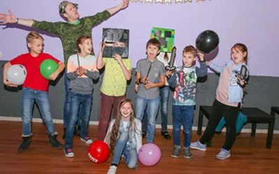 На празднике в стиле Майнкрафт с элементами квеста ребята погружаются в мир их любимой компьютерной игры.