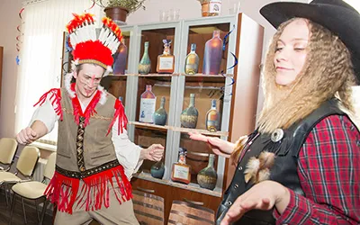 А потом аниматоры предложат ребятам попробовать самих себя в роли ковбоев.