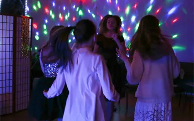 Диско-пати включает музыкальные и танцевальные конкурсы, театральные игры с перевоплощением и переодеванием, караоке и многое другое.