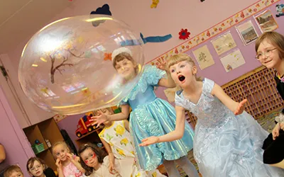 Для детского дня рождения отлично подходят яркие выступления фокусников, волшебное шоу мыльных пузырей, дрессированные животные, эффектное крио или научное шоу.